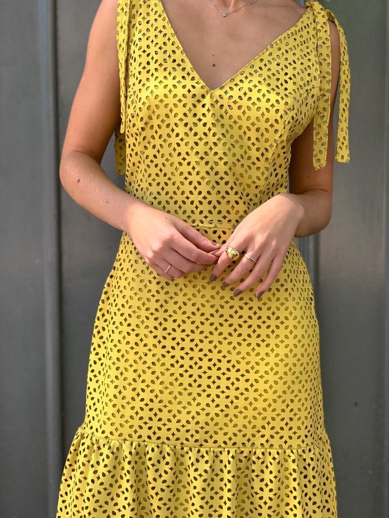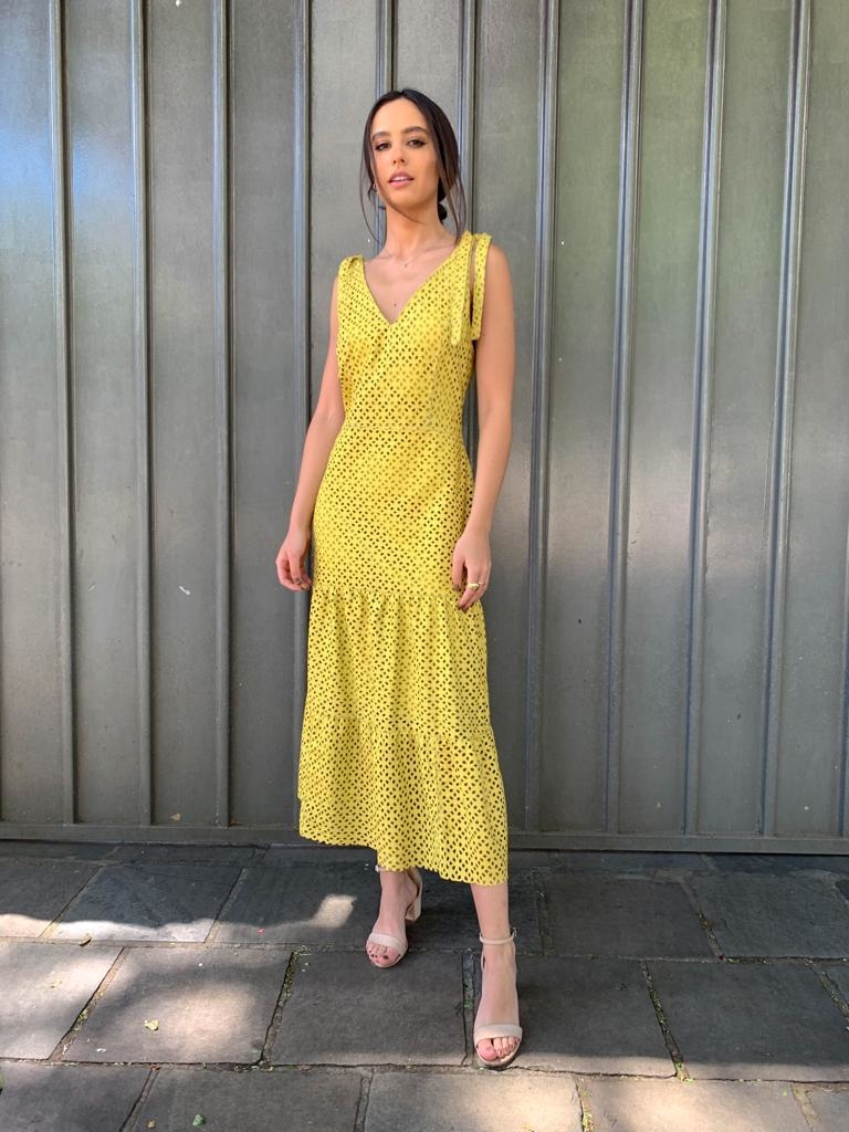 Vestido em couro pelica com decote V e desenhos exclusivos feito a laser. Vestido possui modelagem ajustada ao corpo, alças regulagem própria, fechamento com zíper nas costas e comprimento midi Composição: 100% COURO MESTIÇO FORRO CETIM COM ELASTANO 6%